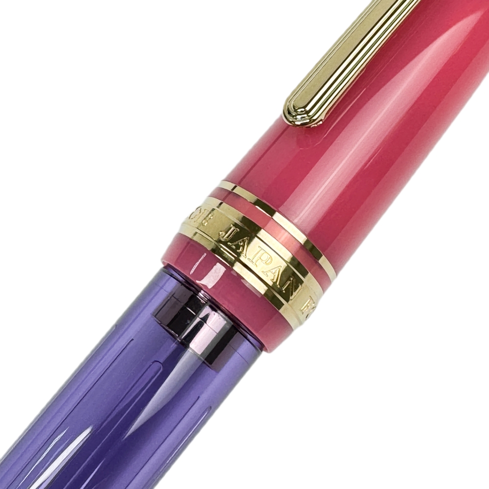 Набор с чернилами и конвертером в подарочной коробке. Sailor Professional Gear Slim — младшая сестра широко известной японской «корпоративной» перьевой ручки Sailor Professional Gear. ProGear Slim короче и тоньше, чем ProGear. Золотое перо 14 Карат. Длина: в закрытом состоянии — 125 мм, без колпачка — 110 мм, вес ручки - 17 г. Прозрачный корпус из акриловой смолы, перо, клип и декоративные элементы покрыты золотом. Лимитированная серия Manyo посвящена японской природе. Rabbit Ear Iris. Цвет корпуса фиолетовый, колпачок и хват розового цвета. Навершие колпачка прозрачно-фиолетовое, заглушка корпуса розовая. Комплектуется чернилами MANYO Kakitsubata, 50 мл. (Нежный и глубокий синий цвет с серым оттенком) и конвертером.