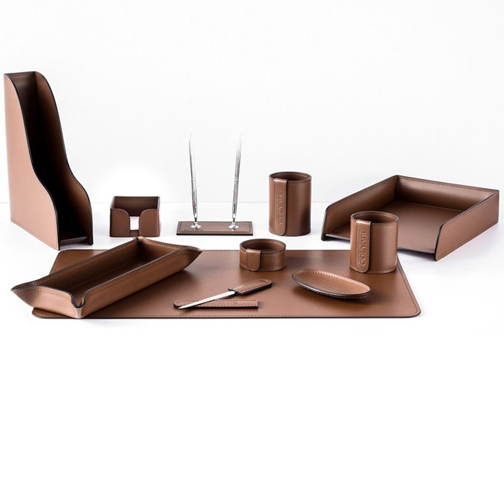 Настольный набор — практичный подарок для организации рабочего пространства. Наборы серии Бизнес — это оптимальное соотношение цены и качества. Кожа Cuoietto, из которой изготовлены данные наборы, отличается высокой прочностью, благодаря полиуретановому покрытию. Разнообразие цветовых решений позволяет подобрать набор для руководителя, который гармонично вольется в интерьер любого стиля, а также с уверенностью принимать самых изысканных клиентов.