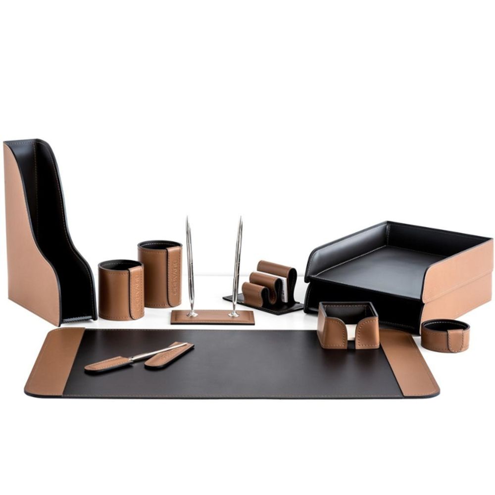 Настольный набор — практичный подарок для организации рабочего пространства. Наборы серии Бизнес — это оптимальное соотношение цены и качества. Кожа Cuoietto, из которой изготовлены данные наборы, отличается высокой прочностью, благодаря полиуретановому покрытию. Разнообразие цветовых решений позволяет подобрать набор для руководителя, который гармонично вольется в интерьер любого стиля, а также с уверенностью принимать самых изысканных клиентов.