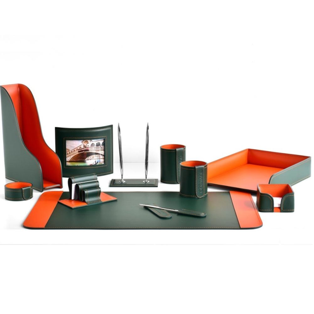 Настольный набор — практичный подарок для организации рабочего пространства. Наборы серии Бизнес — это оптимальное соотношение цены и качества. Кожа Cuoietto, из которой изготовлены данные наборы, отличается высокой прочностью, благодаря полиуретановому покрытию. Разнообразие цветовых решений позволяет подобрать набор для руководителя, который гармонично вольется в интерьер любого стиля, а также с уверенностью принимать самых изысканных клиентов.
