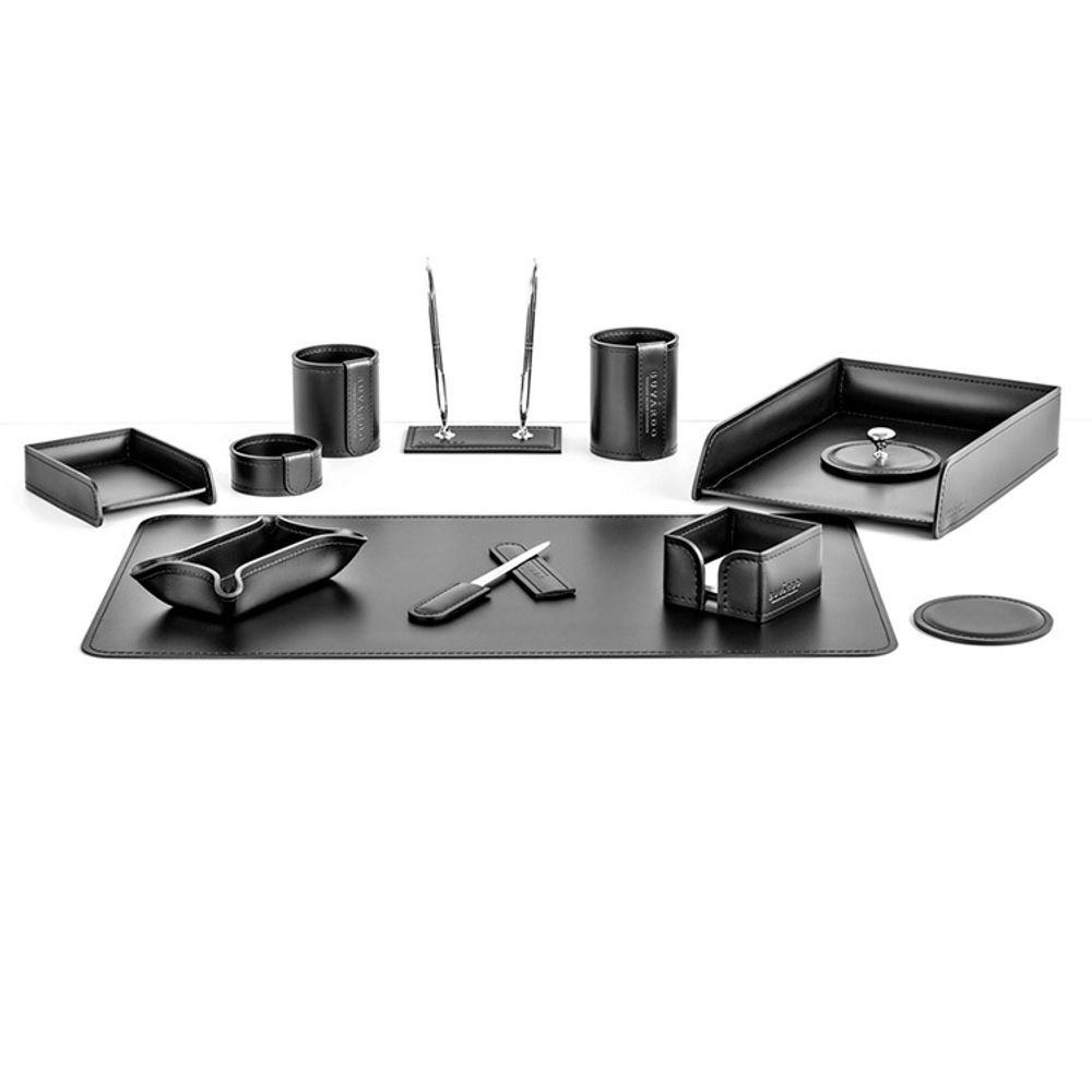 Настольный набор — практичный подарок для организации рабочего пространства. Наборы серии Бизнес — это оптимальное соотношение цены и качества. Кожа Cuoietto, из которой изготовлены данные наборы, отличается высокой прочностью, благодаря полиуретановому покрытию. Разнообразие цветовых решений позволяет подобрать набор для руководителя, который гармонично вольется в интерьер любого стиля, а также с уверенностью принимать самых изысканных клиентов.
