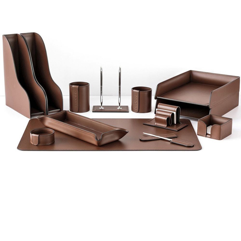 Настольный набор — практичный подарок для организации рабочего пространства. Наборы серии Бизнес — это оптимальное соотношение цены и качества. Кожа Cuoietto, из которой изготовлены данные наборы, отличается высокой прочностью, благодаря полиуретановому покрытию. Разнообразие цветовых решений позволяет подобрать набор для руководителя, который гармонично вольется в интерьер любого стиля, а также с уверенностью принимать самых изысканных клиентов.
