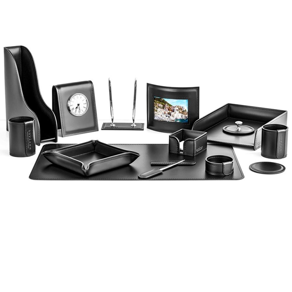 Настольный набор — практичный подарок для организации рабочего пространства. Наборы серии Бизнес — это оптимальное соотношение цены и качества. Кожа Cuoietto, из которой изготовлены данные наборы, отличается высокой прочностью, благодаря полиуретановому покрытию. Разнообразие цветовых решений позволяет подобрать набор для руководителя, который гармонично вольется в интерьер любого стиля, а также с уверенностью принимать самых изысканных клиентов.