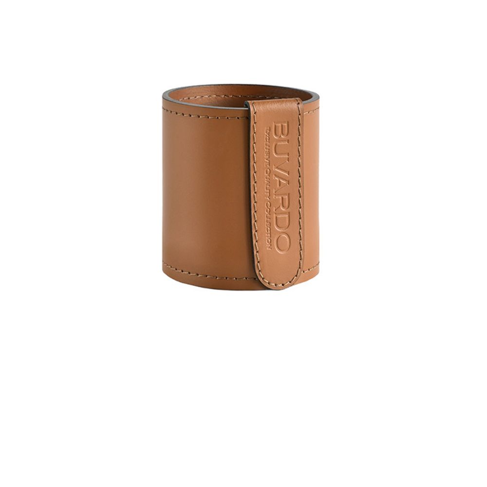 Стакан цилиндрической формы, двухслойный из кожи с высокопрочным полиуретановым покрытием. Полиуретановый слой предохраняет от механических повреждений, влаги и загрязнения, а также вместо слоя краски на самой коже используется цветной слой полиуретана.