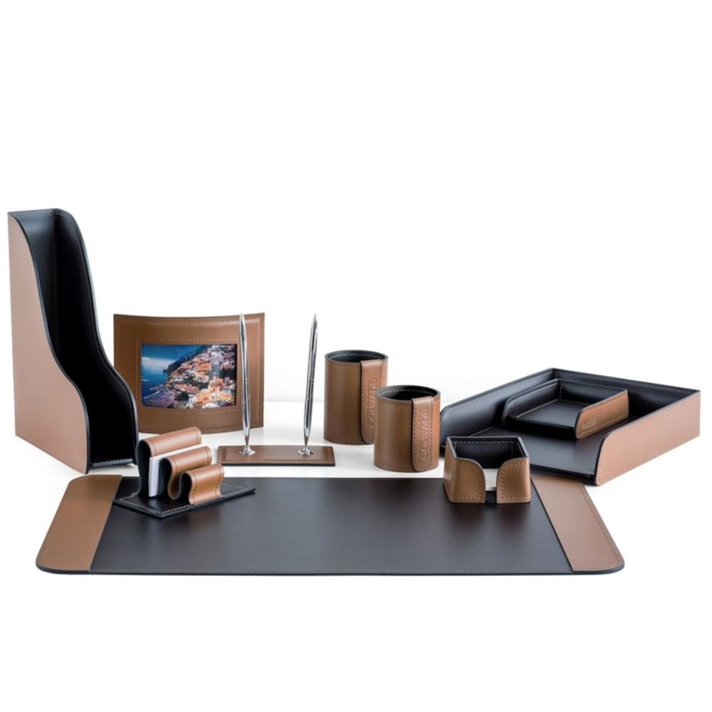 Настольный набор — практичный подарок для организации рабочего пространства. Наборы серии Бизнес — это оптимальное соотношение цены и качества. Кожа Cuoietto, из которой изготовлены данные наборы, отличается высокой прочностью, благодаря полиуретановому покрытию. Разнообразие цветовых решений позволяет подобрать набор для руководителя, который гармонично вольется в интерьер любого стиля, а также с уверенностью принимать самых изысканных клиентов.