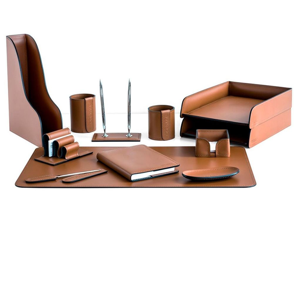 Настольный набор — практичный подарок для организации рабочего пространства. Наборы серии Бизнес — это оптимальное соотношение цены и качества. Кожа Cuoietto, из которой изготовлены данные наборы, отличается высокой прочностью, благодаря полиуретановому покрытию. Разнообразие цветовых решений позволяет подобрать набор для руководителя, который гармонично вольется в интерьер любого стиля, а также с уверенностью принимать самых изысканных клиентов.