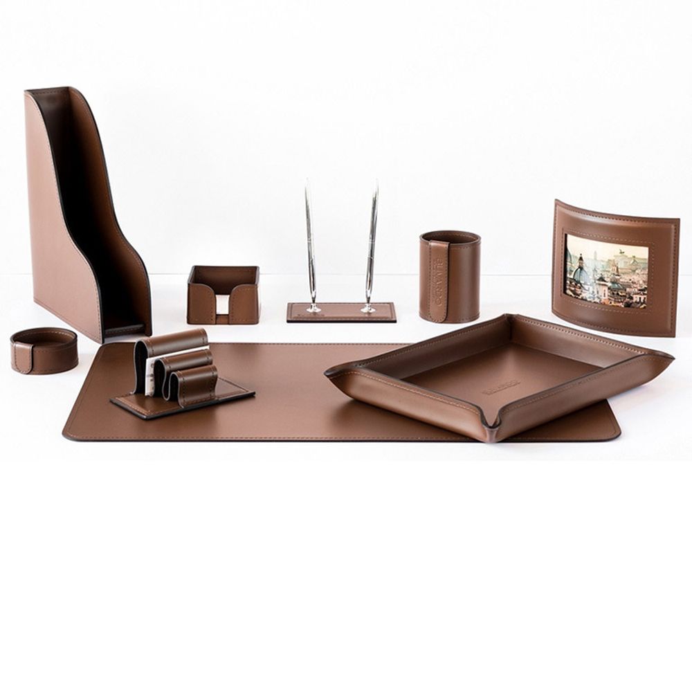 Настольный набор — практичный подарок для организации рабочего пространства. Наборы серии Бизнес — это оптимальное соотношение цены и качества. Кожа Cuoietto, из которой изготовлены данные наборы, отличается высокой прочностью, благодаря полиуретановому покрытию. Разнообразие цветовых решений позволяет подобрать набор для руководителя, который гармонично вольется в интерьер любого стиля, а также с уверенностью принимать самых изысканных клиентов.