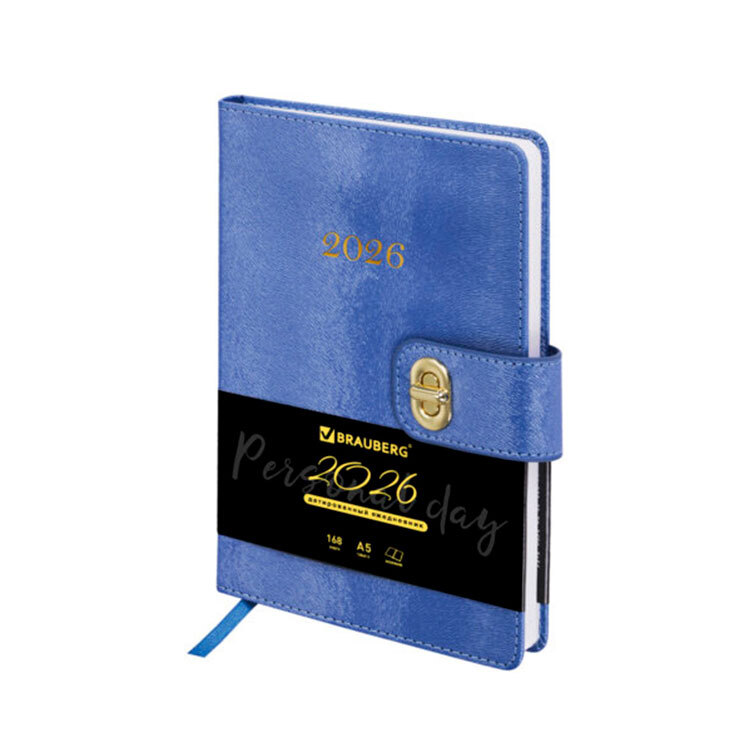 Датированный ежедневник формата А5 от известного бренда Brauberg - стильный помощник в организации вашего времени! Твердое покрытие «под кожу» синего оттенка. Внутренний блок удобен для записей благодаря четкому расположению дат на весь год.