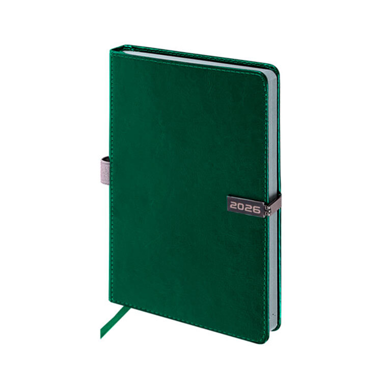 - Ежедневник датированный 2026 А5 138x213 мм BRAUBERG "Inspiration" под кожу цветной срез темно-зеленый (117477)
