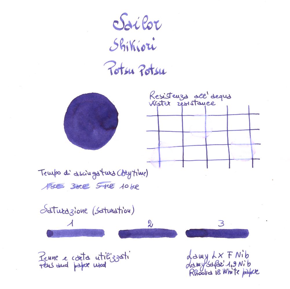 Чернила Sailor Shikiori The Sound of Rain Potsupotsu (артикул 13-1008-224) — это высококачественные японские чернила на водной основе, входящие в серию «Звуки дождя» (Amaoto). Цвет Potsupotsu («Поцу-поцу») вдохновлен звуком первых капель зимнего дождя и представляет собой холодный, глубокий сине-фиолетовый оттенок (ледяная сирень).