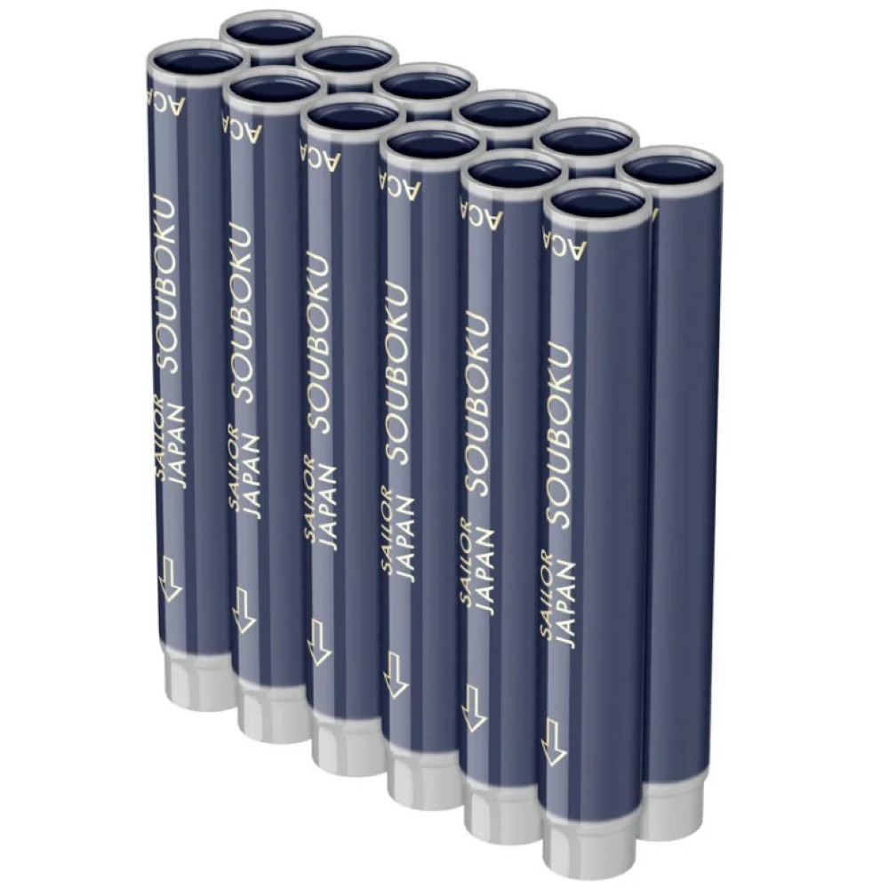 - Картриджи пигментные Sailor Souboku для перьевых ручек сине-черные 12 шт (13-0604-144)