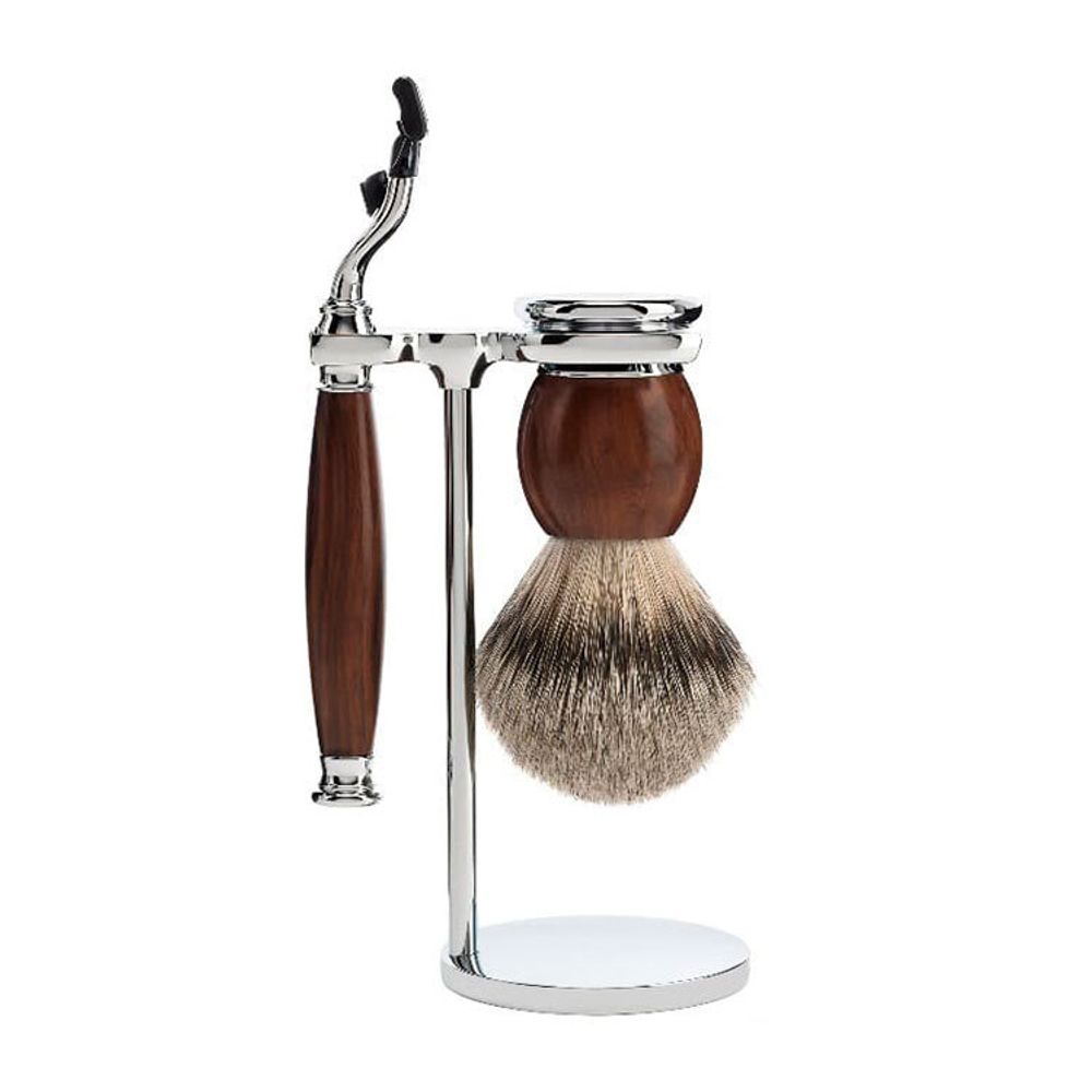 Набор для бритья с ретро формой рукояток из железного дерева и помазком увеличенного размера (L).