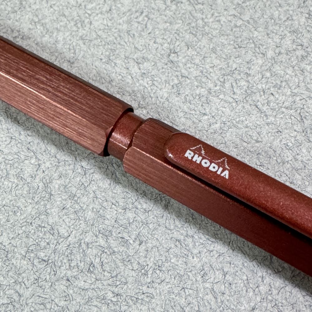 Мультисистемная ручка французского бренда Rhodia в шестигранном корпусе из алюминия с поворотным механизмом. В ручке 2 сменных шариковых стержня 0,5 мм (черный и красный) и механический карандаш 0,5 мм.