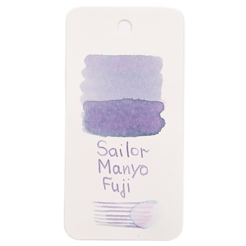 - Флакон чернил Sailor Manyo Fuji (50 мл). Это чернила с эффектом «двойного затенения» (dual shading), которые при письме могут давать переходы от светло-фиолетового до бирюзового.