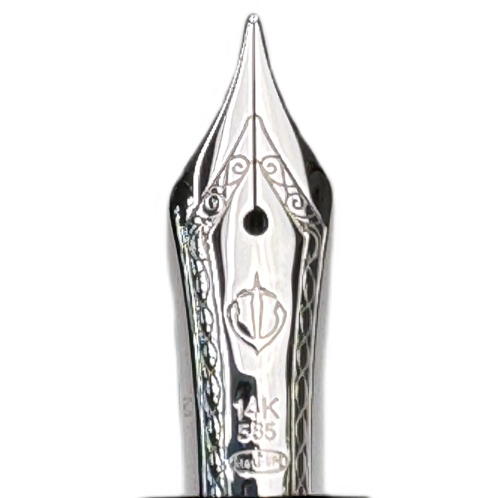 - 14-каратное золотое перо с родиевым покрытием.