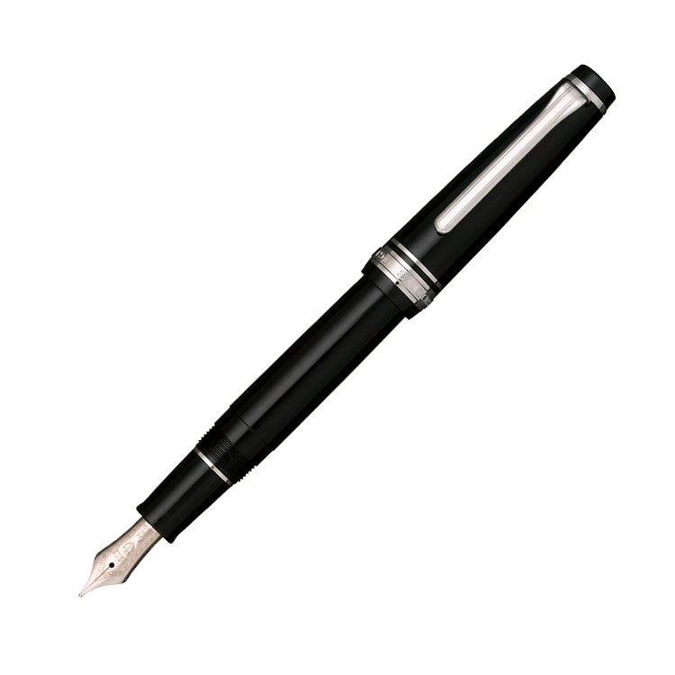 Sailor Professional Gear Slim Black Silver (RT) — это компактная японская перьевая ручка премиум-класса с узнаваемым дизайном «плоский верх» (flat-top). Модель оснащена золотым пером 14 карат с родиевым покрытием с толщиной линии MF (Medium Fine).