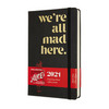 Еженедельник Молескин из ограниченного выпуска на 2021 год. Иллюстрации на обложке и форзацах посвящены сказке Льюиса Кэрролла "Алиса в стране чудес". В этом еженедельнике Вы найдёте изображения Алисы, Безумного Шляпника и Мартовского Зайца. На обложке отпечатана надпись "We're all mad here" («Мы все здесь не в своем уме»).