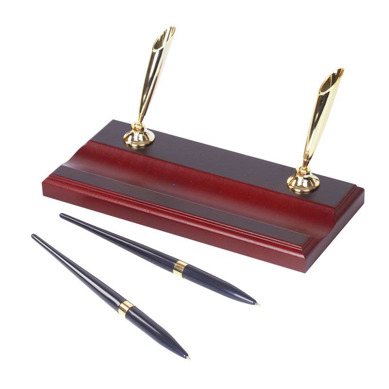 Настольный набор премиум-класса цвета "красное дерево" с золотистой фурнитурой состоит из 10 предметов и содержит все необходимое для организации комфортного и элегантного рабочего места.