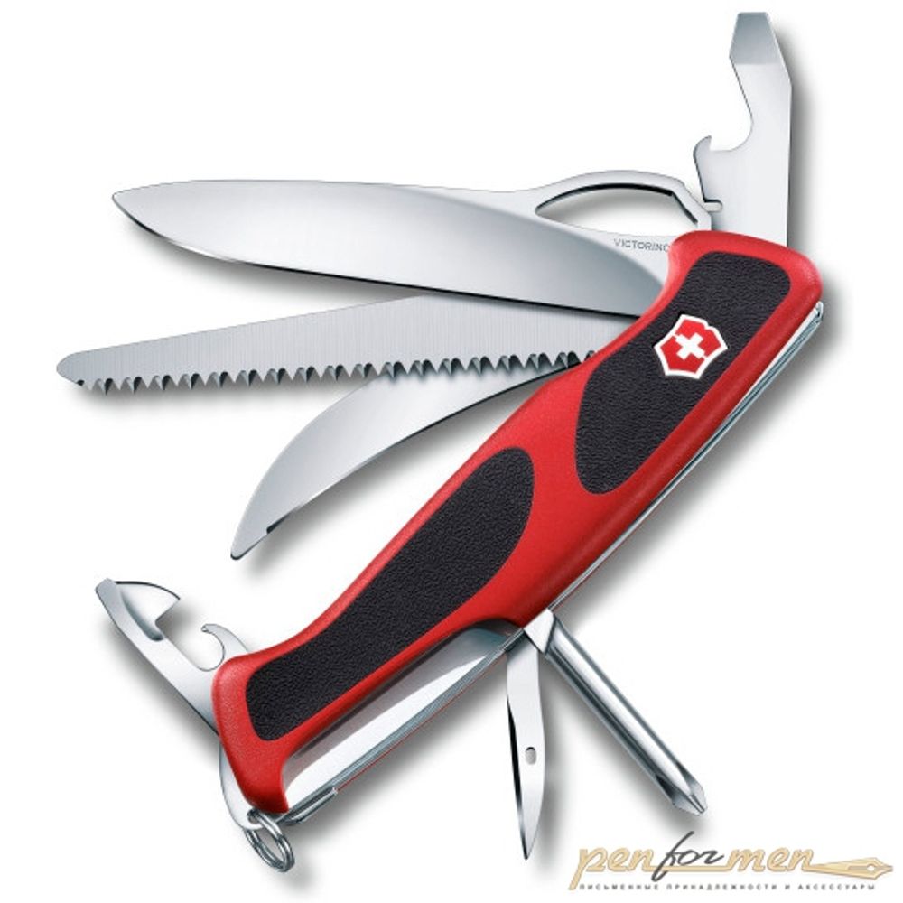 Складной швейцарский нож Victorinox RangerGrip с красно-черной рукоятью выполняет 13 функций: