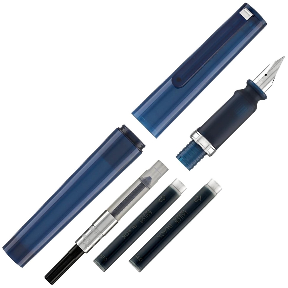 Перьевая ручка Sailor TUZU Adjust Translucent Navy — это инновационная модель 2024 года, разработанная для адаптации под индивидуальный хват пишущего. Основная особенность серии — возможность поворота пера и грип-секции для настройки идеального угла письма.